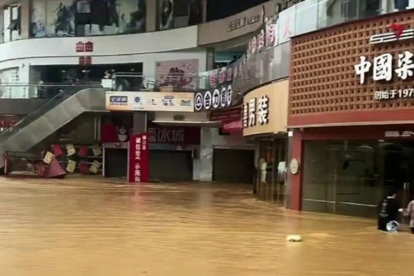 有多名当地网民发布汛情视频,有视频显示县城最大最热闹的商场——常驰广场已被淹,商场内部的洪水如瀑布般倒灌。