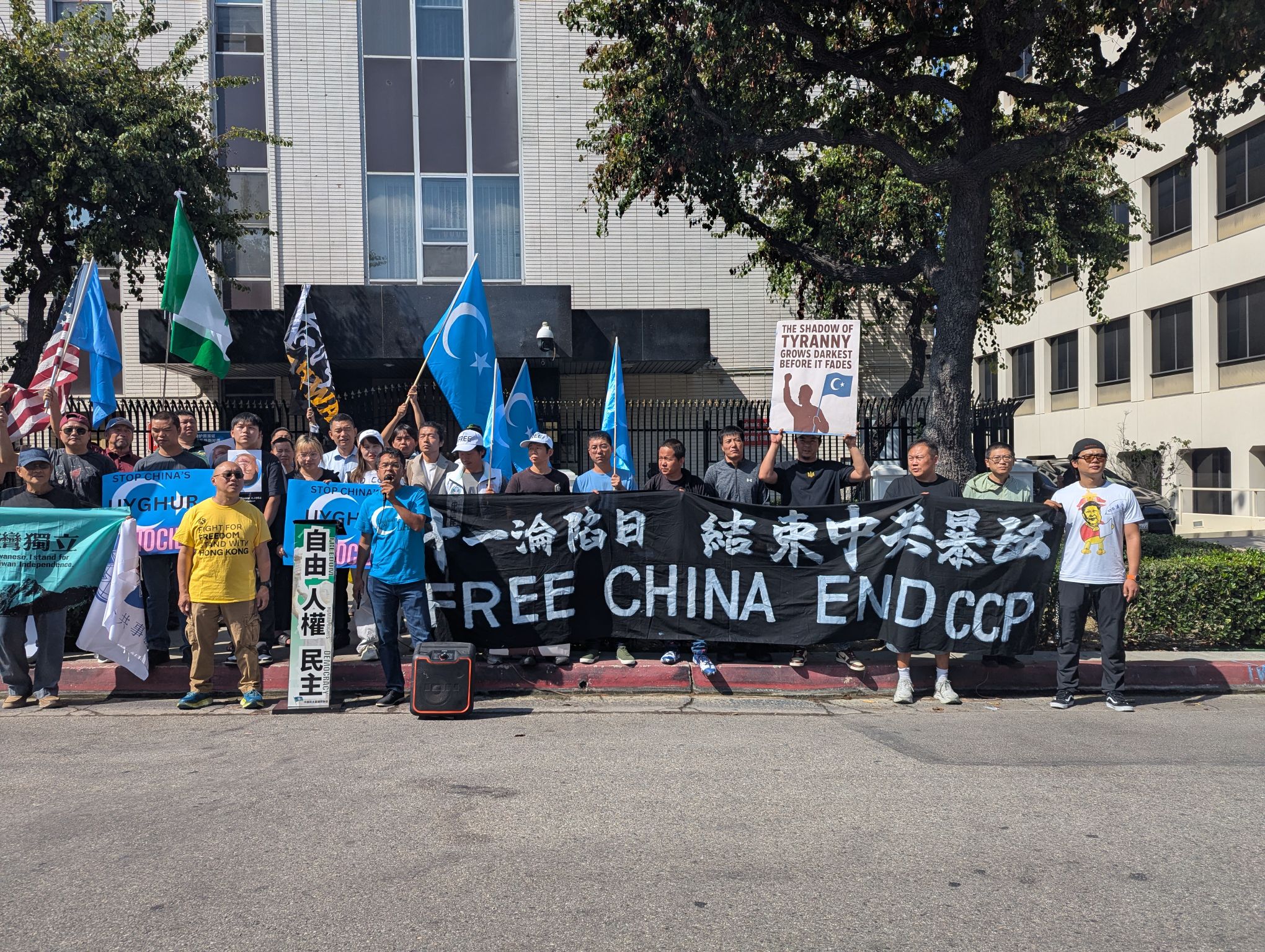 先后加入抗议的包括中国民主党国际联盟、中国民主党全委会洛杉矶委员会、洛杉矶香港论坛、台湾人公共事务协会、以及新疆人等多个团体。集会结束前,他们泼污、焚烧了一面中共的五星血旗。