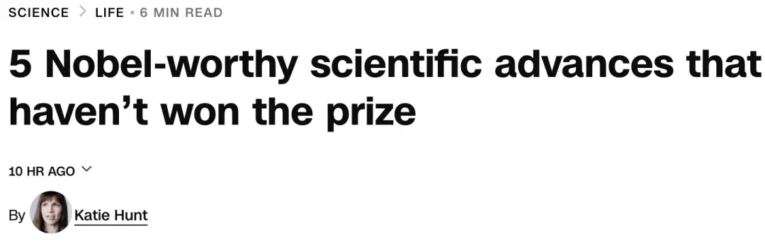 科学撰稿人Katie Hunt预测了5项诺奖级科学进步,其中三项生理学或医学奖相关。
