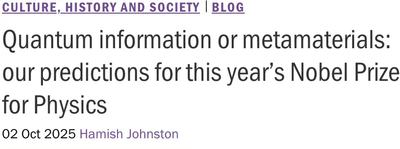 受去年物理学诺贝尔奖授予两位人工智能领域的计算机科学家的启发,Physics World预测今年的获奖者将因其在量子信息与算法领域的贡献而获此殊荣。