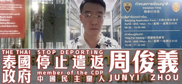 【大纪元2025年10月08日讯】(大纪元记者宁海钟、顾晓华采访报导)中国政治流亡人士周俊义近四个月前在泰国被当地警方以签证违规为由逮捕,面临遣返风险,海外民运界持续关注。这次事件被认为是中共跨国镇压的案例之一。知情者指,泰国早已不是中国流亡者的避风港了。